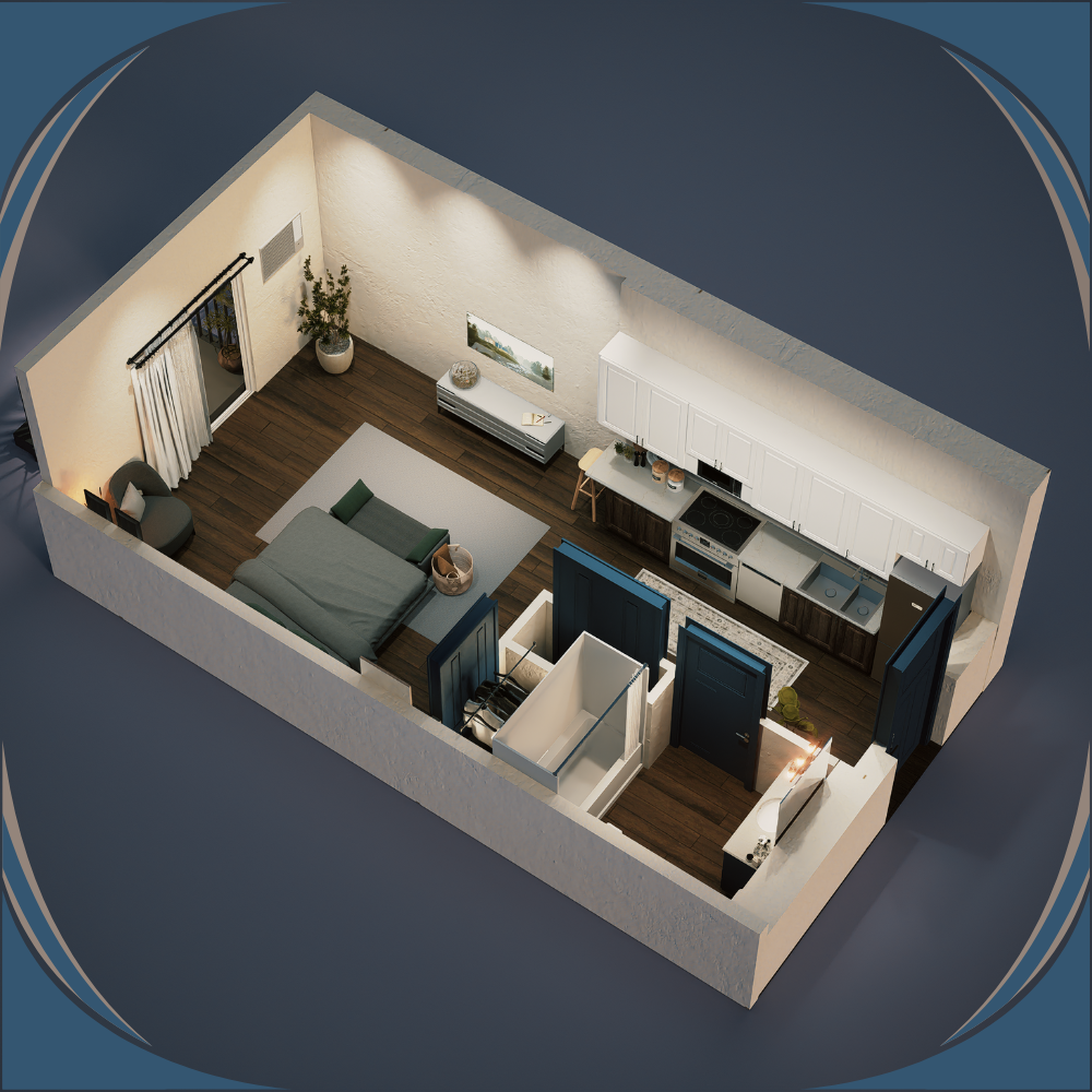 5′ x 8′ patios (first floor) or balconies (2nd & 3rd floors) with exterior lights